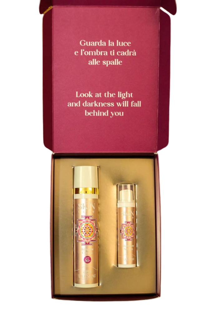 SKINGLOW SERUM: Aqua [Water] (Eau), Dicaprylyl ether, Caprylic/capric triglyceride, Squalane, Cetearyl glucoside, Niacinamide, Sorbitan olivate, Propanediol, Carica papaya (Papaya) leaf extract, Butyrospermum parkii (Shea) butter, Theobroma cacao (Cocoa) seed butter (*), Glycerin, Arbutin, Boerhavia diffusa root extract, Vitis vinifera (Grape) leaf extract (*), Tocopherol, Himanthalia elongata extract, Amyris balsamifera bark oil, Cananga odorata flower oil, Rosa damascena flower oil, Cetearyl alcohol, Sodium levulinate, 3-o-Ethyl ascorbic acid, Betaine, Cetyl palmitate, Myristyl myristate, Urea, Sorbitan palmitate, Sodium anisate, Phenethyl alcohol, Sodium cetearyl sulfate, Sodium hyaluronatem, Undecyl alcohol, Xanthan gum, Lecithin, Citronellol, Geraniol, Parfum [Fragrance], Ascorbyl palmitate, Hydroxycitronellal, Citric acid, Farnesol, Lactic acid.