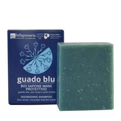 Ingredients: Olea Europaea Fruit Oil*, Cocos Nucifera Oil*, Aqua, Sodium Hydroxide, Linum Usitatissimum Seed Oil*, Lavandula Hybrida Oil*, Isatis Tinctoria Leaf Powder, Vitis Vinifera Skin Extract*, Cymbopogon Flexuosus Herb Oil, Sodium Phytate, Citric Acid, Glycerin, CI 77007, Linalool, Citral, Geraniol, Limonene, Citronellol (*da agricoltura biologica)